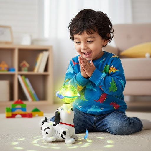 Bring joy and laughter to playtime with the 360° Rotatable Musical Puppy! This adorable puppy toy spins, plays cheerful music, and lights up with vibrant colors — keeping kids entertained while encouraging movement and fun interaction.